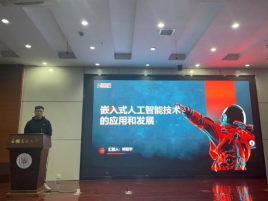 活动期间,南京优奈特林新华总经理和东科半导体(安徽)股份有限公司华东区域产品经理(我院19级优秀学子)汤宗光为全体微电子学生分别做了“嵌入式人工智能技术的应用和发展”和“从校园到职场—半导体从业心得”的报告,林总从人工智能的发展历程、当前嵌入式基于人工智能的发展方向进行了详细的讲解;汤经理向同学们介绍了行业现状与趋势,提出了宝贵的成长建议。
