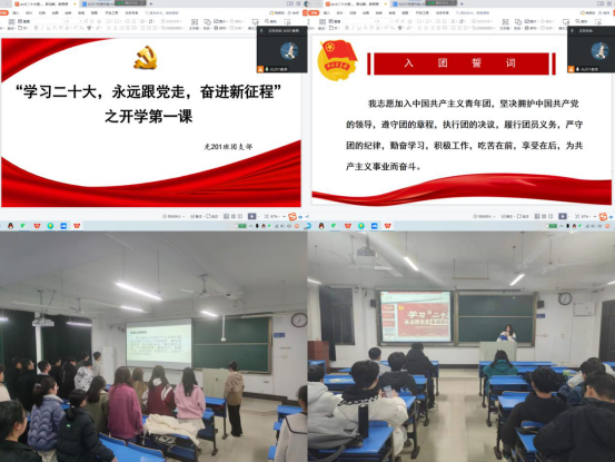 组织开展“‘学习二十大,永远跟党走,奋进新征程’之开学第一课”主题团日活动。各团支部通过召开主题班会,重温入团誓词,学习重要讲话等方式,深入学习宣传贯彻党的二十大精神。