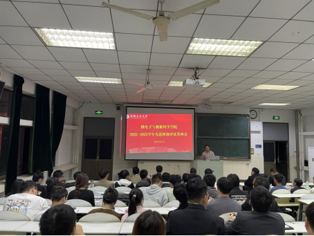 在阶梯教室204举办了2022-2023学年先进班级评比答辩会,学院党委书记汪春胜、离退休处党委副书记、副处长郭宏、全体辅导员出席评比答辩会并担任评委,100多名新生代表参加会议。