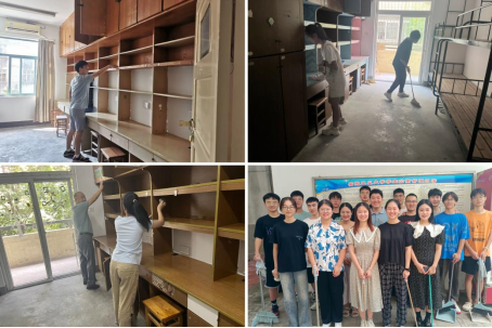 学院党委副书记郭宏对本次活动做了详细部署。他强调,党员同志们要树旗帜、亮身份、做表率、展风采,发挥敢于担当、甘于奉献的精神,在清扫中要注意排查可能存在的安全隐患,彻底清理卫生死角,切实做好服务保障工作,为迎新工作保驾护航。活动开始后,大家互相配合,不怕脏、不喊累,以认真的态度与饱满的热情投入到工作中。经过辛勤劳动,G2栋和8栋的新生宿舍面貌焕然一新。在清扫过程中,大家还检查了新生宿舍中水电、桌椅等状况,将需要报修和增添的物品汇总成表格,及时反馈给公寓管理员。此次活动为2023级新生提供一个整洁温馨的宿舍环境,帮助他们更快的融入新环境,更好的适应大学生活。