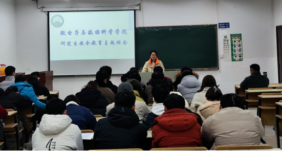1月9日在数理楼303成功召开研究生安全教育主题班会。辅导员老师宋二银主讲,全体研究生参加。