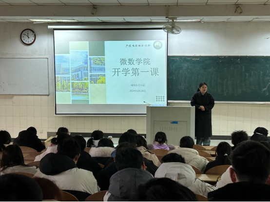 在阶教101开展“开学第一课”活动,23辅导员王小花主讲,全体23级学生参加。