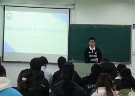 2023-2024学年第一学期学生会述职评议会议在数理楼303举行,院团委书记段世祥及全体学生会部长参加会议。