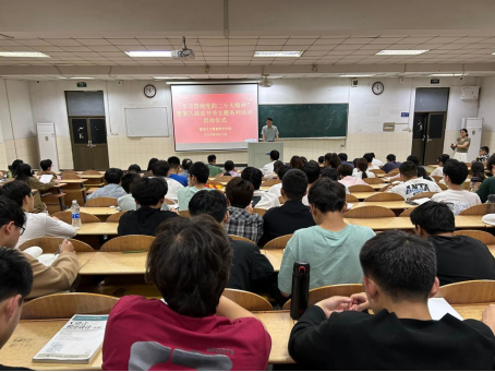 在阶梯教室101召开第八届读书节主题系列活动启动仪式,各年级学生代表参加,辅导员张佳良主持会议。