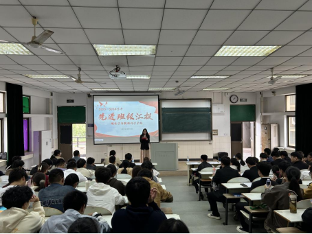 在阶梯教室205举办2023-2024学年先进班集体评选汇报会。院团委书记段世祥、全体辅导员担任本次汇报会评委,各班级主要学生干部现场观摩学习。