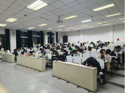 本次活动分为“模拟考试”与“讲解答疑”两个阶段。考试前,监考人员着重强调考试纪律,引导同学们有序签到并对号入座。考试中,监考人员认真履职,严格监考,同学们迅速进入考试状态,严格遵守考场纪律,聚精会神答题,充分展现出同学们诚信考试的精神风貌。考试结束后组织各班测试成绩优异的同学为大家讲解解题思路,有效保障同学们对所学知识的熟练掌握。