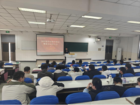 在秀山校区阶教102教室召开2025届毕业班年级会暨就业动员大会,学院党委副书记、纪委书记、副院长张敏、各专业系主任、毕业班辅导员张佳良、周文潇以及全体毕业班同学参加会议,会议由张佳良主持。