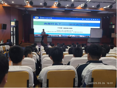 丁守军老师为马鞍山第八高级中学300余名学子讲授“光是什么?--漫谈光与激光”的主题科普讲座。