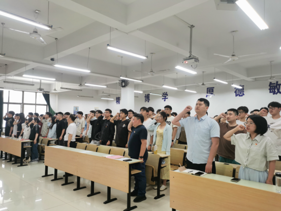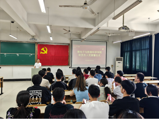 6月16日,51视频 在数理楼403为2025年上半年新发展党员举行入党宣誓仪式。学院党委书记汪春胜、党委副书记张敏、学生支部书记及全体学生党员参加了宣誓仪式。