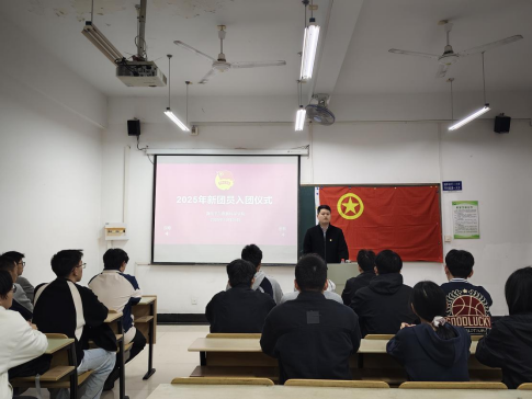 2025年下半年新团员入团仪式在数理楼303举行。学院团委书记段世祥、各班团支书及本期新发展团员参与此次仪式。